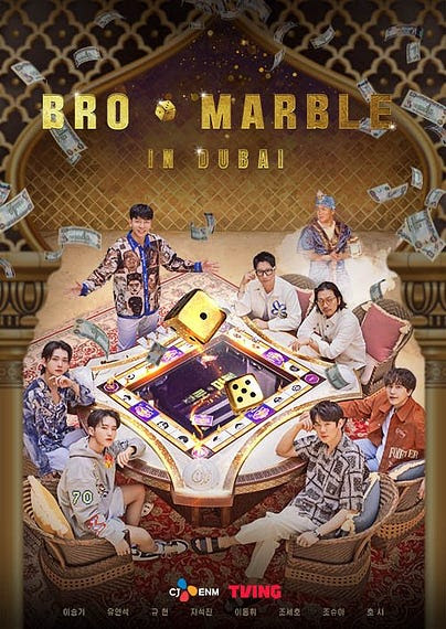 Bro&Marble / Dubái, se estrenó en julio en el servicio de streaming coreano TVING. El formato es la adaptación televisiva del juego de mesa Blue Marble Game, una versión coreana del mítico Monopoly, con actores coreanos y estrellas del K-pop como concursantes.